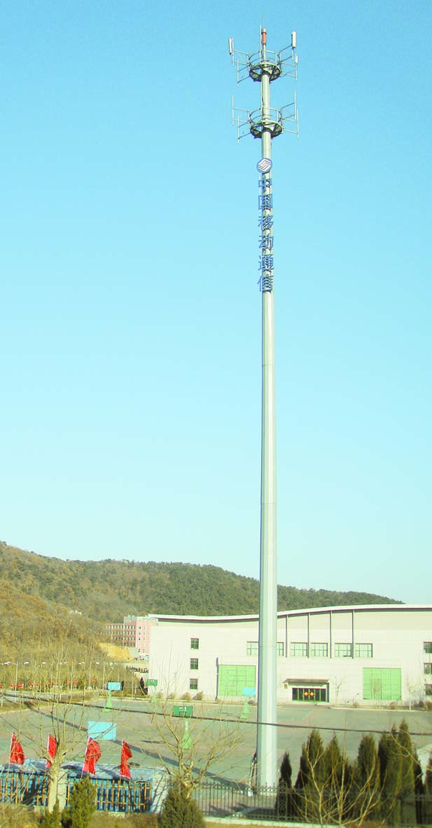 二、材料說明:材質采用Q235、Q345、Q355鋼材,一般為8棱-12棱-16棱錐形桿體,采用法蘭連接和套接兩種連接方式,壁厚分別6、8、10、12㎜不等,桿體內外熱鍍鋅防腐處理,鍍鋅層厚度均勻無色差,在65um以上,能保證二十五年以上的防腐性能要求。桿體抗風速35米/秒,抗地震裂度為8度。