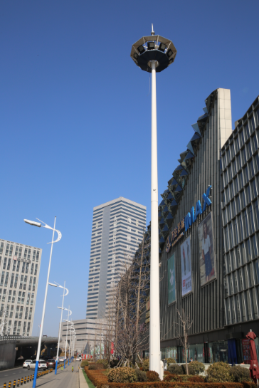 三、組成說明:電動升降式高桿燈,主要由活動燈盤、燈桿、地基組成。其中包括:升降系統、電氣系統、防雷保護系統、照明燈具系統組成。